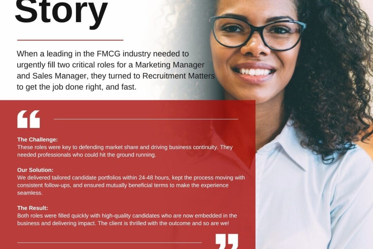 Recruitment Matters Africa is a leading recruitment agency with a regional footprint and a commitment to excellence. Located upstairs in the main mall at Arundel Village, the agency specialises in connecting high-calibre talent with exceptional employers across various sectors—including commercial, technical, executive, and specialist fields. With a client-focused and results-driven approach, the team offers tailored recruitment solutions that support business growth and help professionals advance their careers across the African continent.